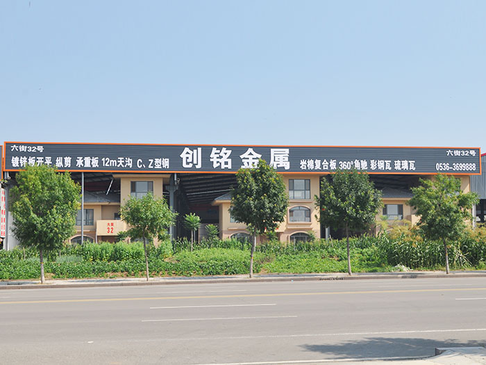 濰坊創(chuàng)銘金屬制品有限公司位于山東臨朐江北物流城,地理位置好。是本地區(qū)一家集鍍鋅板卷材、鍍鋅板開(kāi)平、縱剪、樓層承重板、12米天溝、C、Z型鋼、彩鋼瓦、巖棉復(fù)合板、剪板折彎等產(chǎn)品及板材批發(fā)、零售、加工、配送的公司。